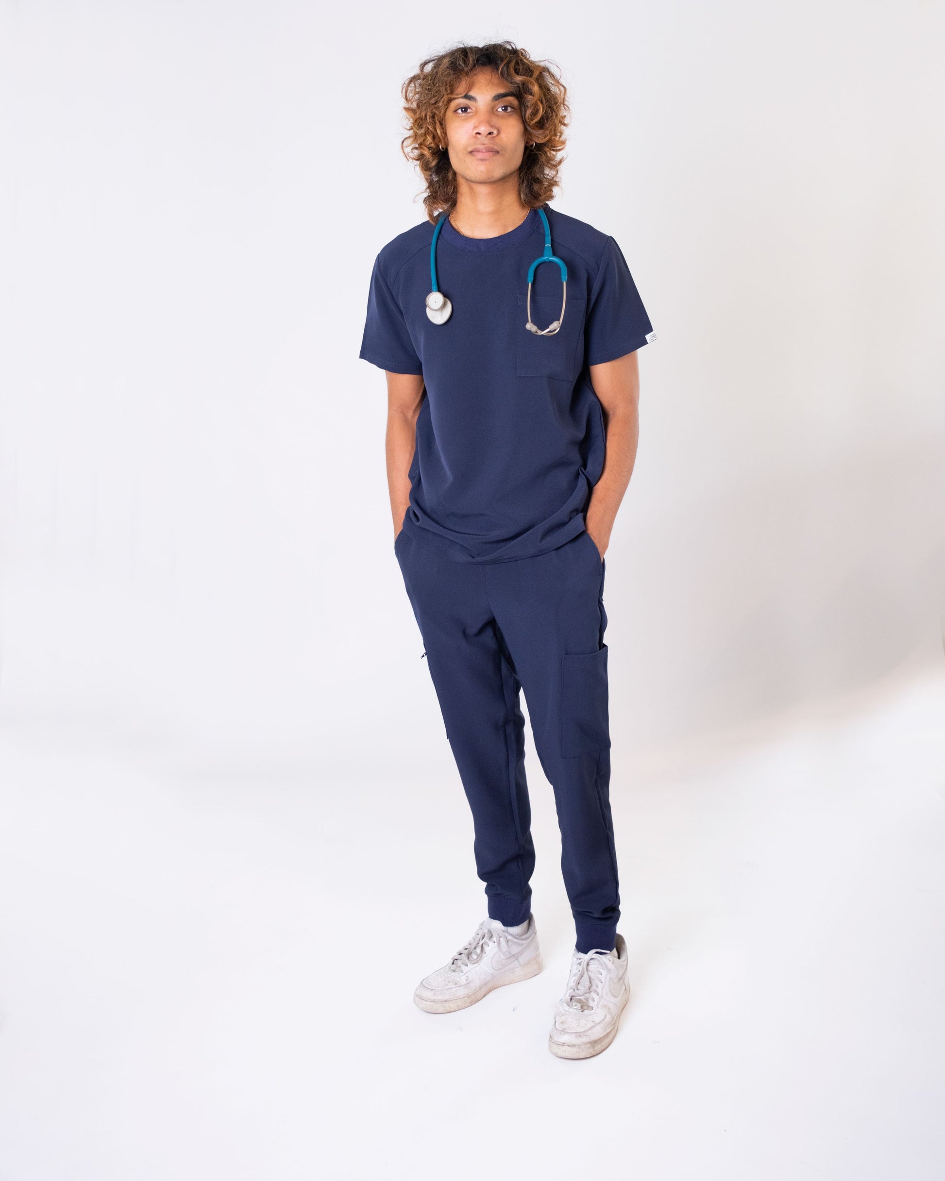 Our Navy Blue New-Gen joggers are simple & clean but far from basic. Comes with 6 pockets, just enough for you to carry the things you need. With a modern well tailored style that doesn’t ever come in your way of bending, running, or doing any of your tasks. This New-Gen scrub Joggers are designed for the Gen-Z superhero that is you.