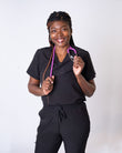 Our Onyx Black is simple, clean and slim fitting. With a signature pocket, just enough for you to carry the things you need. V neck, Modern well tailored style that doesn’t ever get in your way of bending, running, or doing any of your tasks.This New-Gen scrub suit is designed for the Gen-Z superhero that is you.